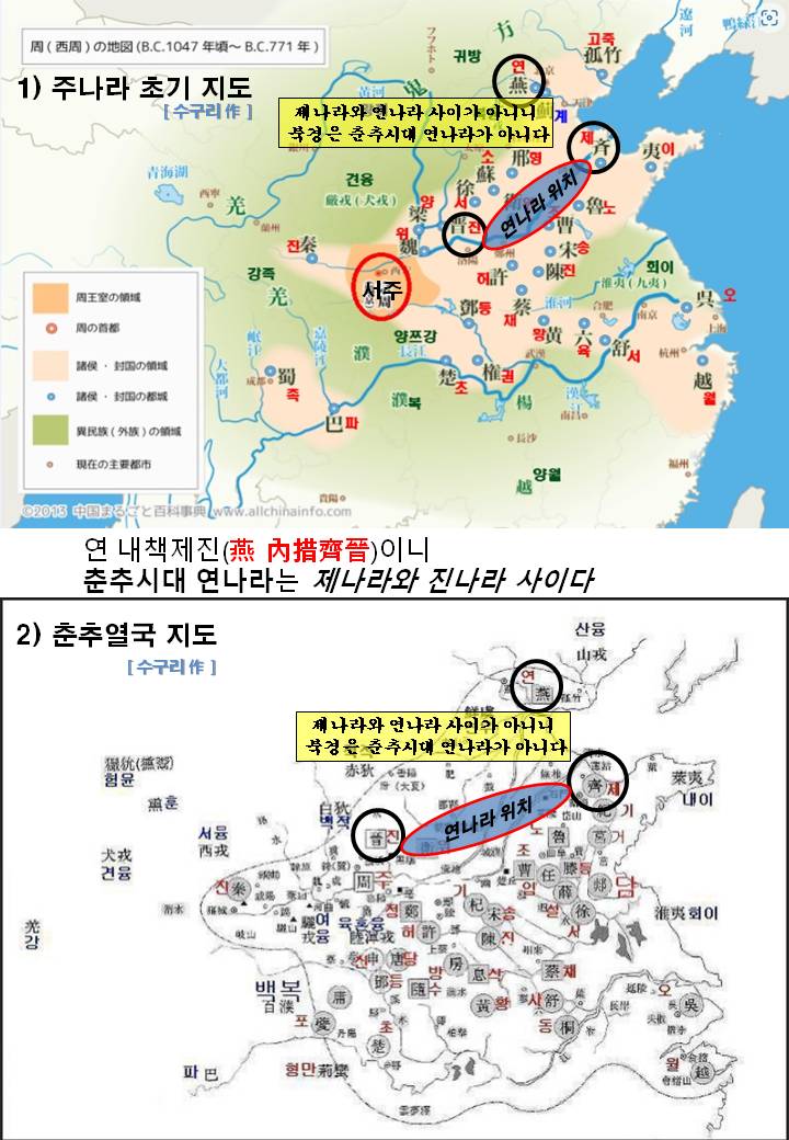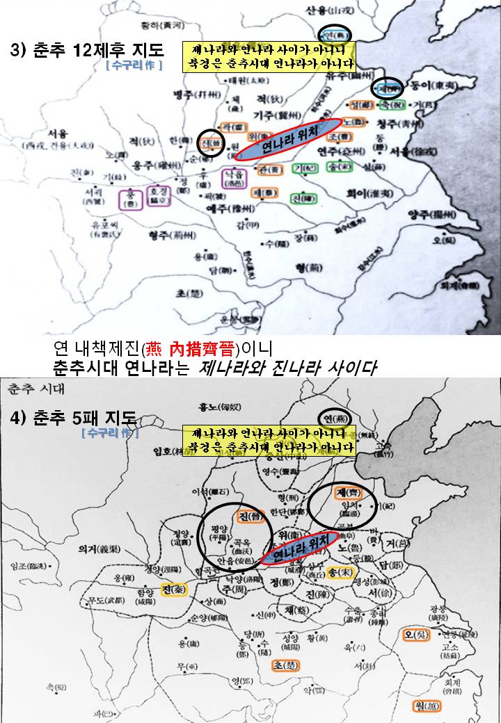 4) 따라서 북경은 연내책제진(燕內措齊晉)의 제나라와 진나라 사이가 아니니 춘추시대 연나라는 북경지역에 없었다