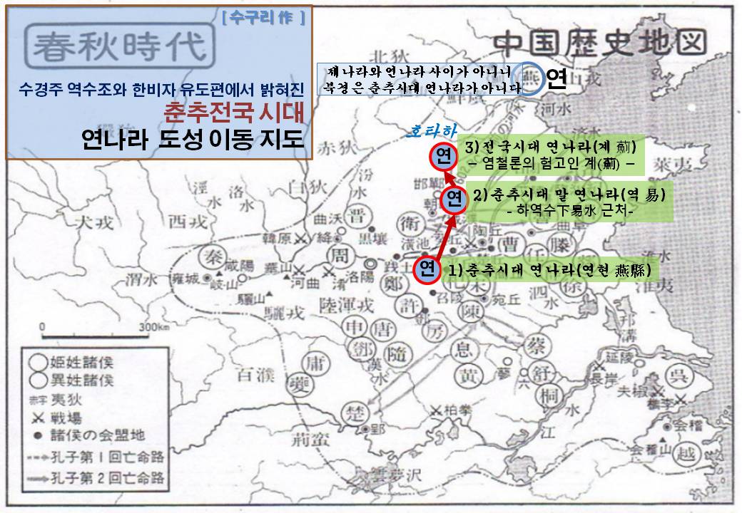 1) 수경주 역수조에 따르면 춘추시대 말에 연나라가 하북성 남부(역易, 하역수下易水 근처)로 도성을 옮겼다
