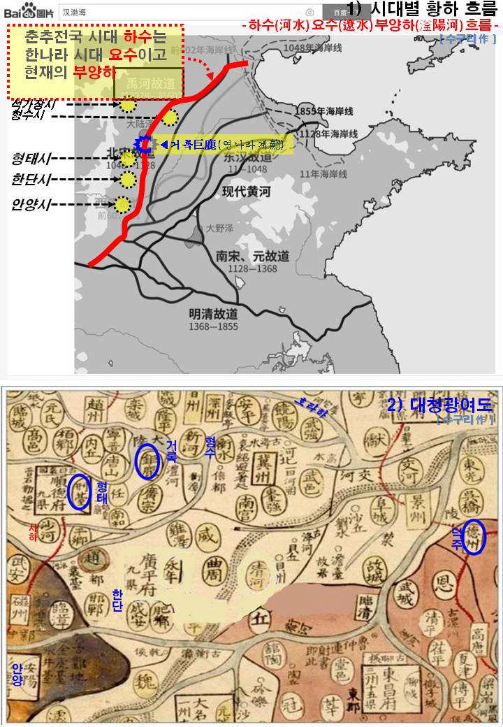 1) 전국시대 하수(요수)는 태행산맥을 따라서 안양시, 한단시, 형태시를 지나서 북쪽으로 흐르다가