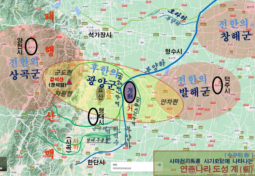 한단시는 전국시대 조나라 도읍이니, 연나라 계(薊)의 위치는 형태시 지역에 있다.(석가장시 남쪽)
