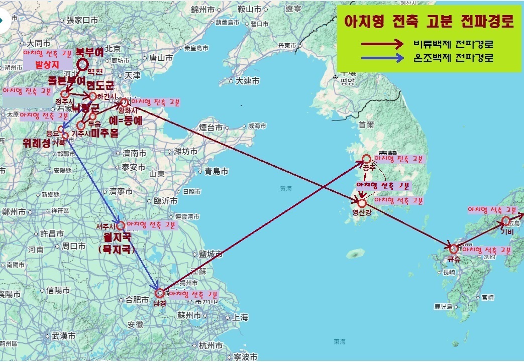 -> 온조백제 : 서주시(제후 은루옥의 온조릉) --> 온조백제 : 남경(근초고왕릉, 근구수왕릉)