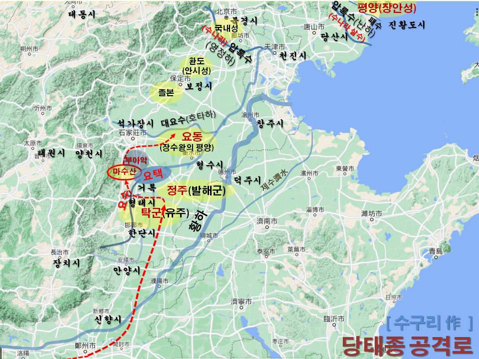 1) 하북성 북부지역은 고구려 영토였으니 고대 요동은 하북성 중부지역이다