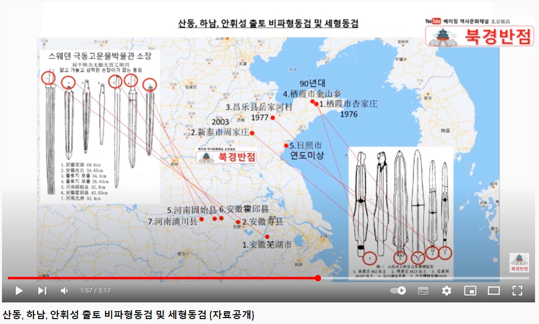 ※주) 아래 지도 출처 : 북경반점의 "산동, 하남, 안휘성 출토 비파형동검 및 세형동검 (자료공개)"