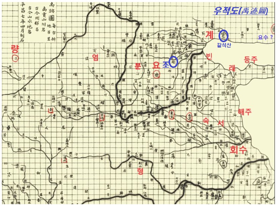 ② 가장 오래된 중국 고지도인 1137년 석비에 세긴 우적도(禹迹圖)에서