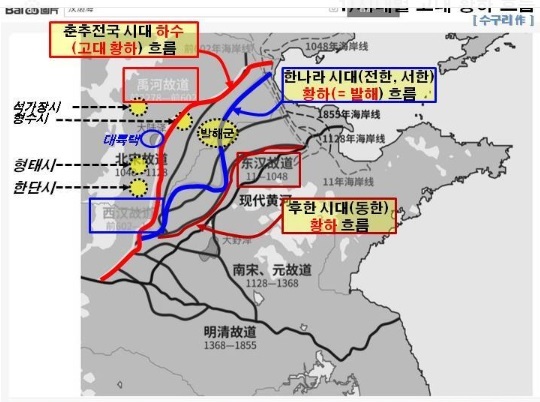[출처] 바이두 백과의 시대별 고대 황하 흐름 --> 黄河故道图片_百度百科 (baidu.com)